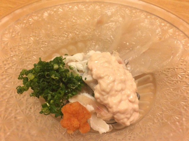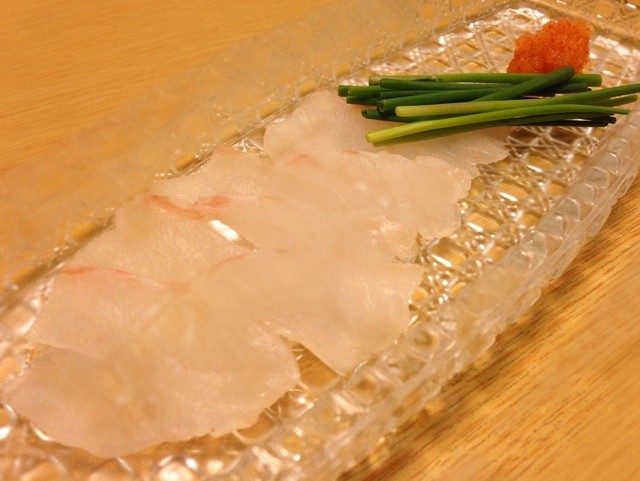 ガラスのお皿と一緒に透けるような、てっさが出てきました。