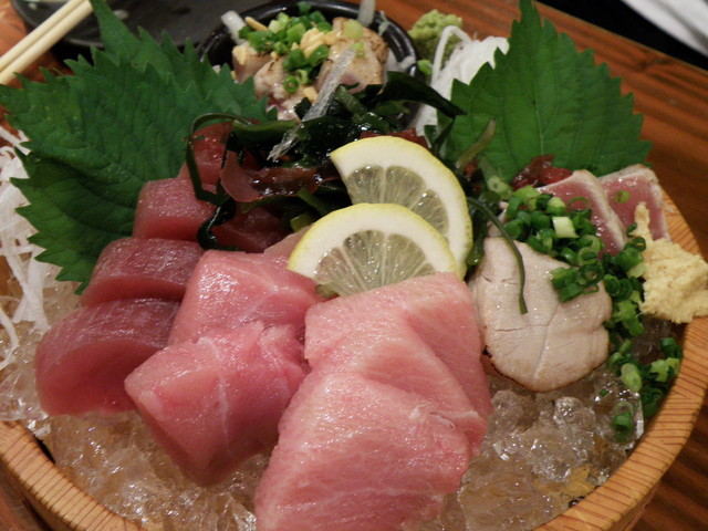 写真の中央に見えるのが、くじら赤身造りです。
