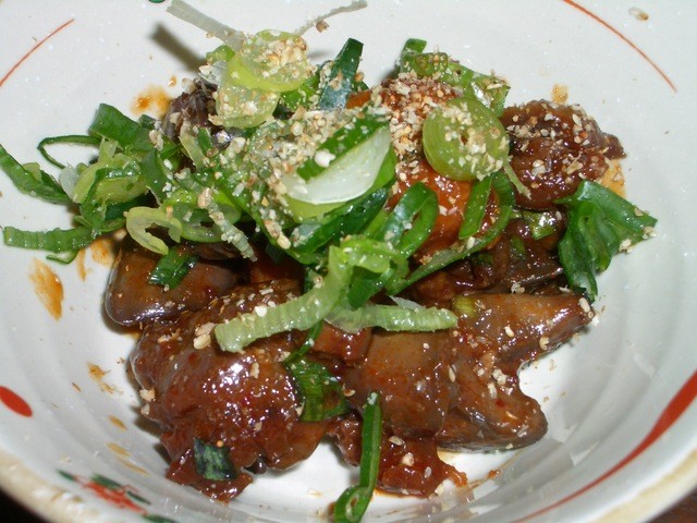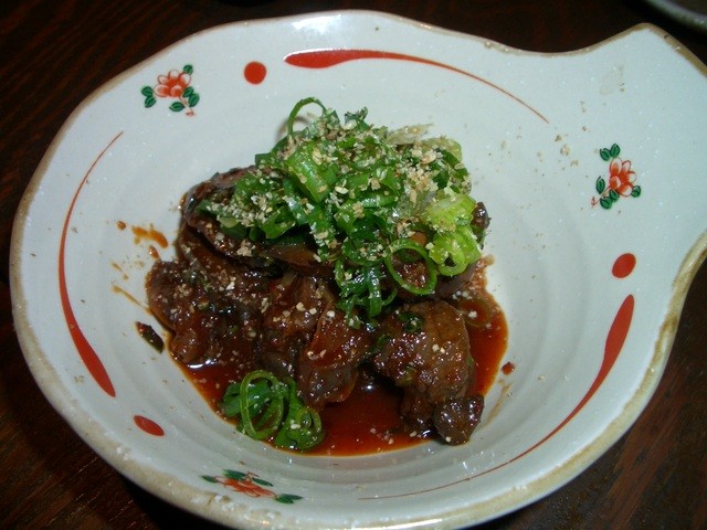 で、こちらのお店で、私の一押しは、何と言っても、100円の肝のあまから煮です。