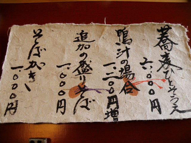 追加で◆鴨汁@1,200円や、◆そばがき@1,000円をお願いすることができます。