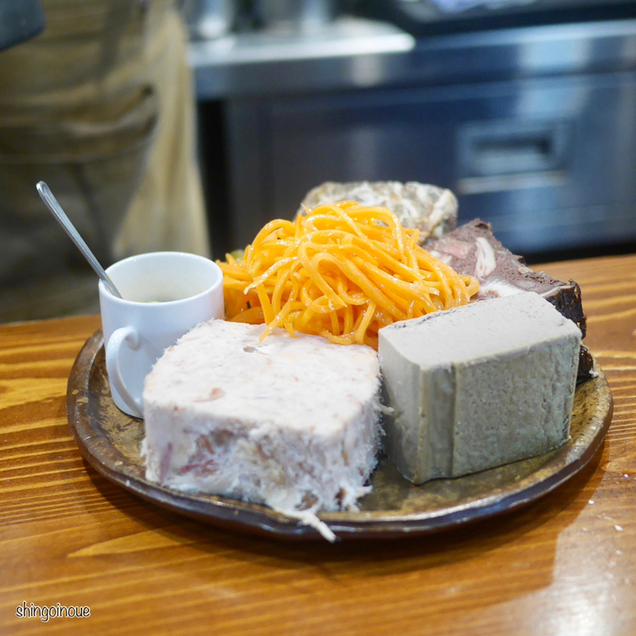 なお、横のお客さんが頼んでいたシャルキュトリーの盛り合わせ。二人分とは思えないぐらいの量。ゆっくり食べたら、これだけでワイン1本いけそう。