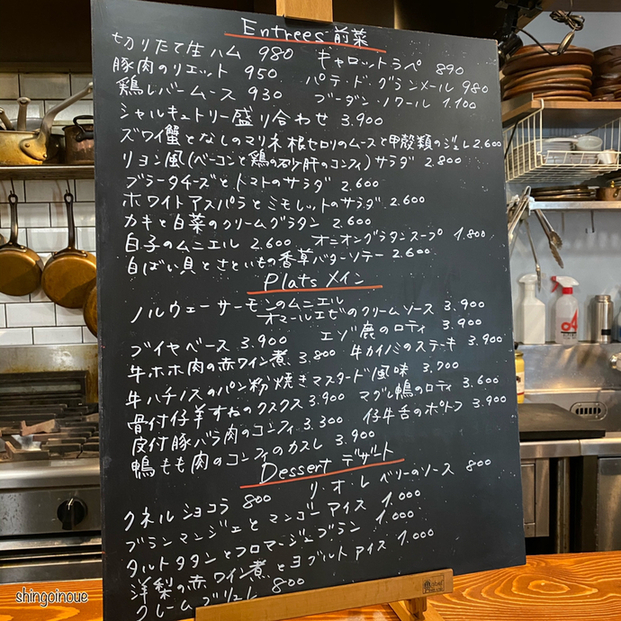 何回きても、オーダーする量のコントロールが難しいお店ではあるが、この日お願いしたのは、、前菜から定番の「切りたて生ハム(980円)」、「パテ・ド・グランメール(980円)」「フォアグラのコンフィ(2,000円)」、「白子のムニエル(2,600円)」の4品。メインは「蝦夷鹿のロティ(3,900円)」、という構成。