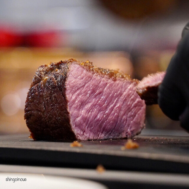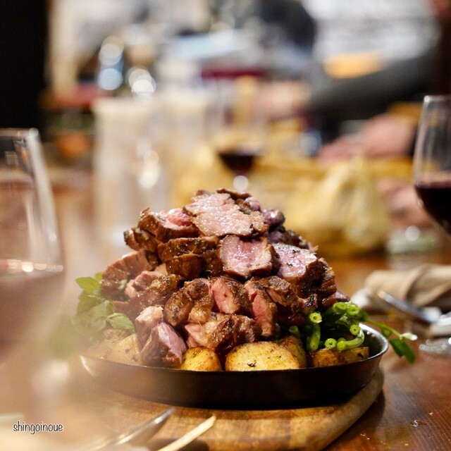 最後は牛ザブトンのロティ。こちらも焼き前から見せてくれる。もともと1キロぐらいだったが、どれぐらい食べますか?という質問に、、、3人で半分ぐらいかな、という形にして、1人150グラムずつほど。出てきたロティは火入れの具合が完璧だ。この量でも食べ切れないぐらいお腹いっぱい。
