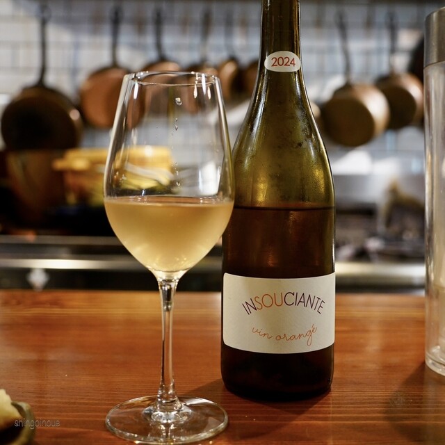 ワインはボトルもグラスも幅広い。ボトルはセラーにたくさん入っているものから好みを選んで飲む感じ。グラスもシェフに好みを言えばいい感じのものを出してくれる。この日はそんな流れでいい感じのピノ・ノワールを。