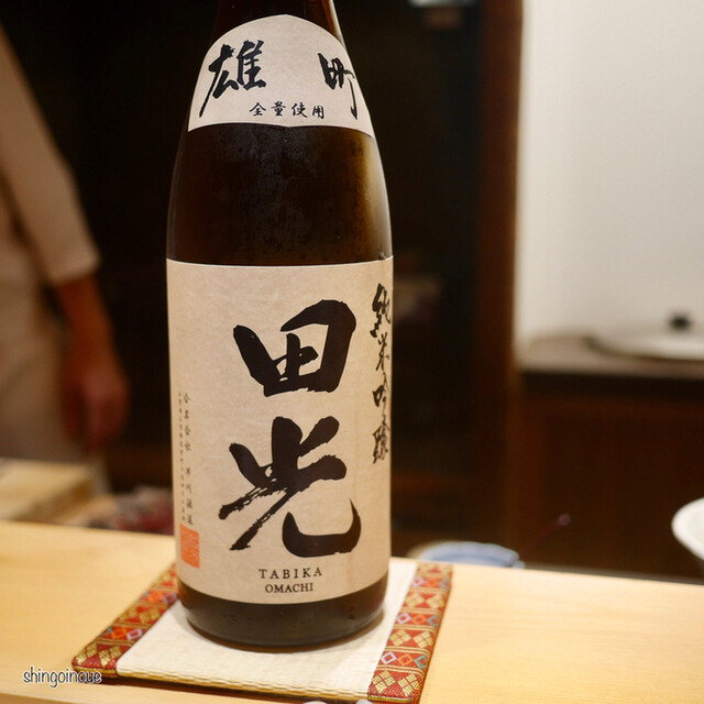 最初はビールで乾杯しつつ、冬らしい海老芋で。刺し身は「白甘鯛とほたて」。ホタテが肉厚過ぎてビビる。続いては安定の茶碗蒸し。メインは白子。食べごたえのある白子がお腹をホッコリさせてくれる。早くモビールがなくなり日本酒に移行。移転されてから明らかに日本酒の品揃えがすごくなった。最初はMIYASAKAの美山錦。しぼりたて生原酒で、スッキリとした味わい。
