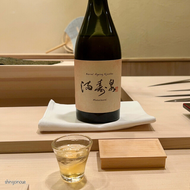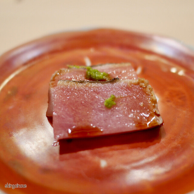このあと、「甘海老の頭」と「メジマグロのたたき」をいただいて、鮨に突入。甘海老の頭の濃い味はわすれがたし。ここまでは写真可だが、お鮨は写真NG。対象の握るお鮨はすごく繊細で、10秒でも酢飯の具合や味が変わるのですぐに食べてほしいという思いの現れ。出されたら、すぐ食べるのが礼儀だ。