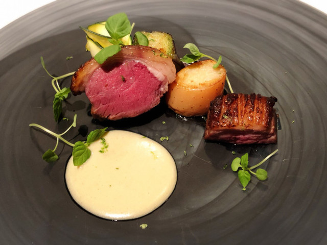 ソルトブッシュ・ラムの味噌柚庵焼き ポルチーニのソース