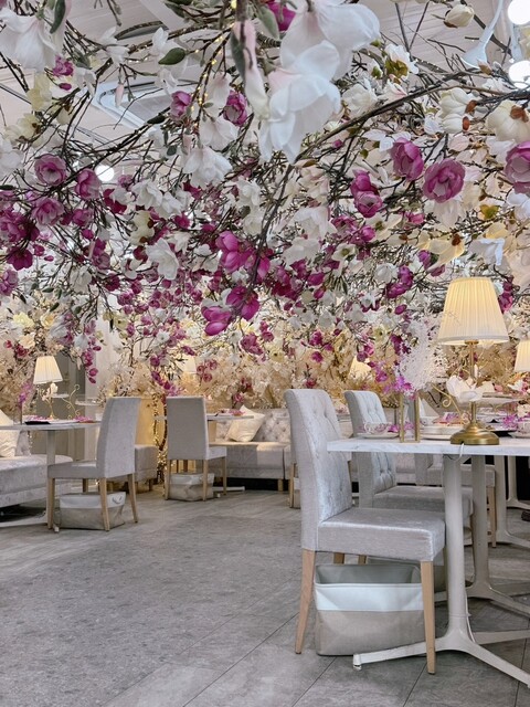 内装もBeautyful!!ピンクのモクレン(木蓮)マグノリアが咲き乱れるティールームで幸せ時間を満喫したよ。あまりにも美しくて、感動的で、幸せで、大切な方とずっとニコニコ笑いっ放しでした。まるで異世界に入り込んだ気分。