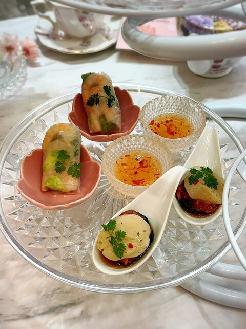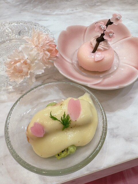 フレンチベースのお料理にスイーツに、ドリンクもおかわり可能で、Sakura Tea等桜を満喫しまっした。