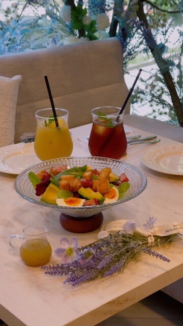 現在はラベンダーに包まれて幸せなブランチタイム。