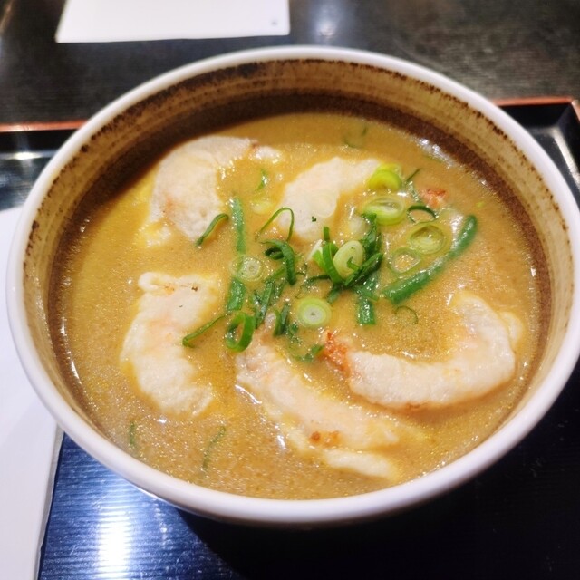 やっぱりここのカレーうどんが一番好きだな。当時、あんまりメニューを見ていなくてカレーうどんしか注文したことがなかったんだけど、よく見たら「海老天カレー」なるものがあるじゃないですか!