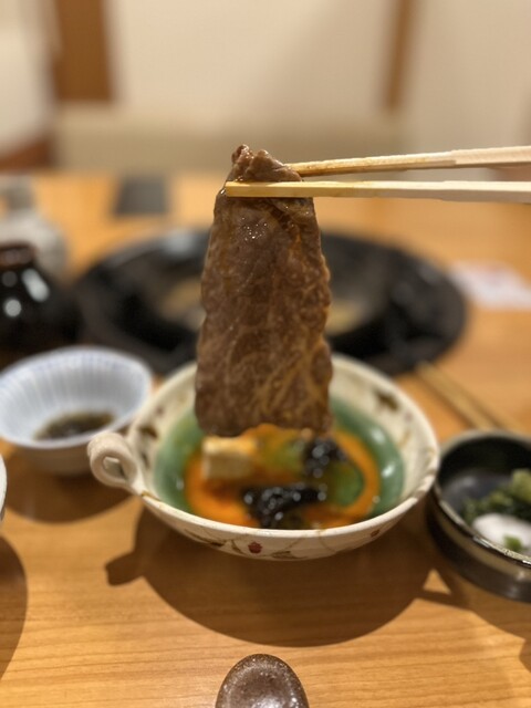 そして良い色になったお肉を卵に潜らせて頂きました。柔らかくお肉のうまみが口の中を走ります。美味しいです。