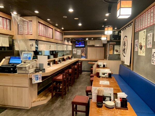店内はカウンター(8席)とテーブル(掘りごたつ)(18席)があります。