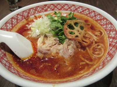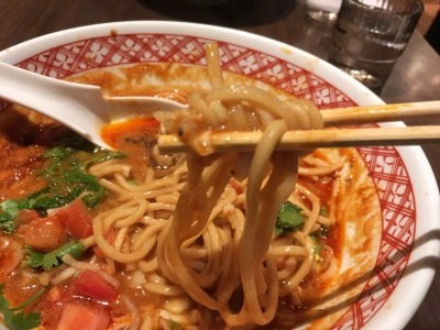 友人のを少し頂きました。トマト坦々麺はつけ麺に比べスープはマイルド。トマトと鶏ガラで煮たスープは美味しい