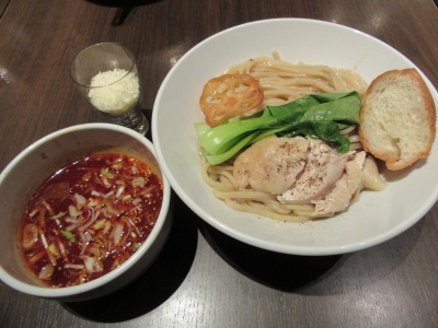 私はトマト担々つけ麺で麺は大でトッピングはチーズ