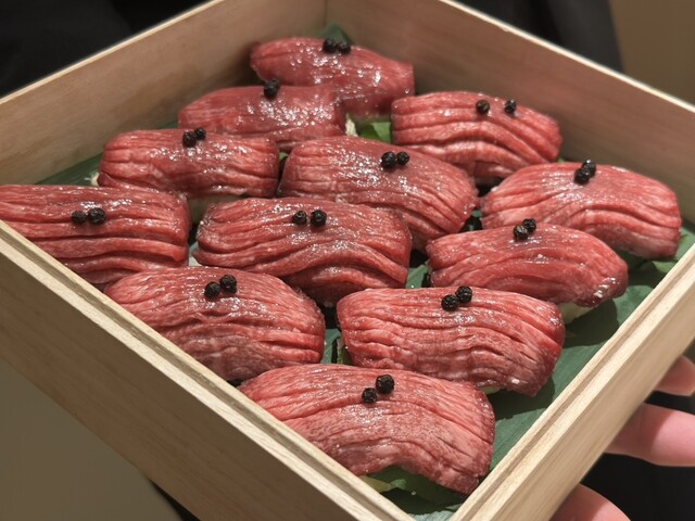 和牛の甘みと鮪の旨味、炙り有明海苔の香ばしさが重なり、最初から完成度の高さを実感。心鷲掴みに。