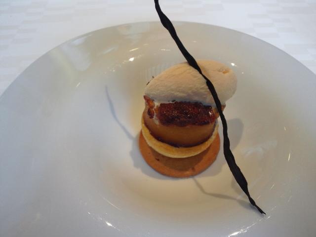 そして、お楽しみのデザートは、バナナとキャラメルの温かいプリンにラム酒のアイスのせ♡