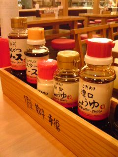 醤油やソースが2種類ずつあって、自分好みに選べます(^O^)