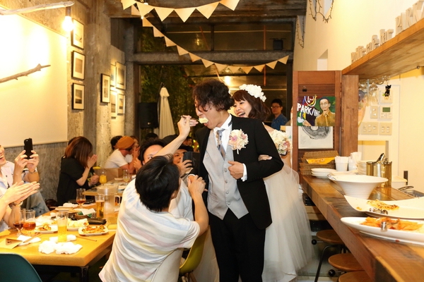 浜松のパーキングで結婚式1.5次会!先日、浜松のパーキングさんにてご友人のみの結婚式1.5次会を行わせていただきました~。この日は雨が降ったりやんだりのはっきりしないお天気でしたが、パーティーの時間は奇跡的に雨も止み、楽しいパーティーになりました。今日の主役のお二人です。お二人とものんびりしていて、まるで熟年夫婦のような風格でした。このまま年を重ねていく姿が目に浮かびますね~。今日の会場さんはPARKING(パーキング)お洒落なカフェでお酒の種類も多く、プライベートでのんびりしに来たいな~。景品も豪華でした。ゲストの皆さんも興味津々で見に来ていました。お二人のおもてなしの気持ちが表れていますね~。新郎新婦様入場!皆さんの拍手に迎えられ、お二人も嬉しそうです。まずは乾杯!ここからは楽しいパーティースタートです。歓談中、新郎新婦様の周りにはゲストの皆さんが集まってくれていました。お二人との仲の良さが伝わってきますね。ここでケーキ入刀!ゲストの皆さんもしっかり写真に収めてくれていました。ここからは景品抽選ゲーム!新郎新婦様もゲストの皆さんも楽しそうです。豪華な景品に、皆さん大盛り上がりです。豪華景品をGETされた皆さん、おめでとうございます。景品抽選ゲームが終わり、ここでサプライズ!敗者復活じゃんけん大会です。皆さん大盛り上がりで参加していただきました。ということで、幸運をGETしたゲストの方と記念写真。お二人のおもてなしの気持ちが通じたのか、皆さん満足そうでした。ここからは歓談の時間。ゲストの皆さんとの距離が近いのも1.5次会の良さですね。新郎新婦さま退場!退場時、みんなに祝福されケーキまでプレゼントされていました。最後まで盛り上がっていますね。最後は新郎新婦様からプチギフト贈呈。新郎新婦様もゲストの皆さんも最後まで楽しそうでした。末永くお幸せに~(^o^)丿↑ラインでお問い合わせはこちらから静岡中部・西部(浜松市・磐田市・袋井市・掛川市・静岡市・豊橋市)のレストランウェディング・会費制結婚式・結婚式二次会幹事代行・1.5次会・格安海外挙式・お披露目パーティーはパーティープラスへお問い合わせを!浜松市南区参野町67-1-2TEL:0120-98-7372メール:info@party-plus.jpHP:http://www.party-plus.jp/ブログ:http://partyplus.hamazo.tv/ユニ婚:http://www.party-plus.jp/restrantwedding/二次会ハッピー:http://www.party-plus.jp/nizikai-happy/格安ハワイ挙式オルノアウェディング:http://orunoahawaiiwedding.hamazo.tv/0120-98-7372