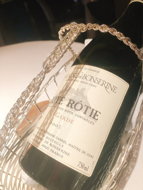 合わせるお酒は、大好きなシャンボール・ミュジニィ!お魚料理ですが、ソースがしっかりしているのと、ワインがとてもエレガントでソフトな印象なので、全く喧嘩しません。