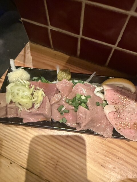 そして看板級の 肉刺し3種盛り合わせ(¥1,490)。部位ごとに食感・脂の香り・旨みの立ち上がりが異なり、三種だけでもしっかりと食べ比べとして成立しています。切り付けの厚さや温度の整え方、盛り付けの清潔感など、刺し物を提供するうえで重要なポイントがすべてクリアされており、「刺し=鮮度だけ」でなく、扱いの良さが味に直結していることを実感できる構成です。