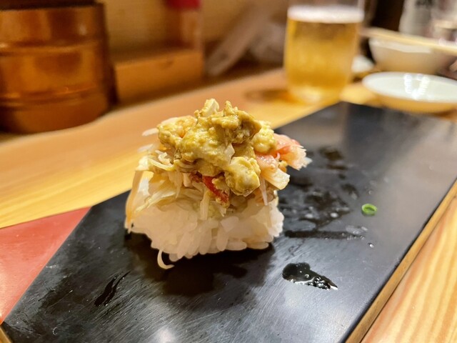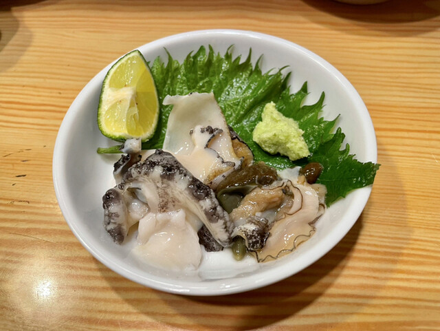 アテは軽めにいただきましたが、なんとも酒の進む質の良い風味が強い海鮮です。ここまでで2人で日本酒4合ほどは飲んでそうな...