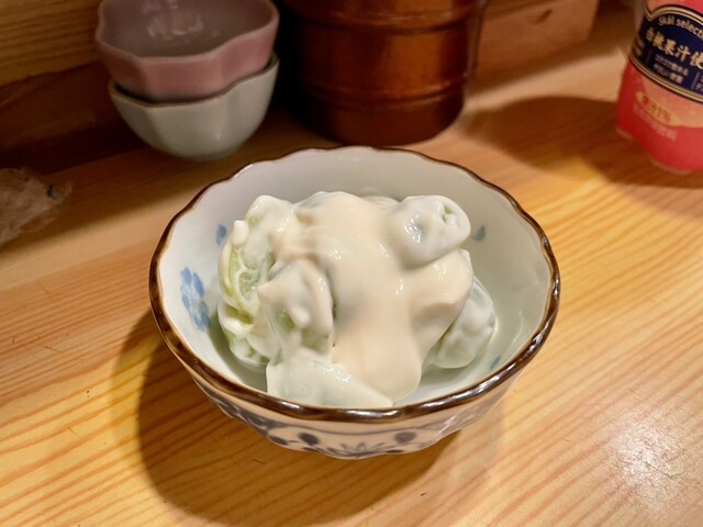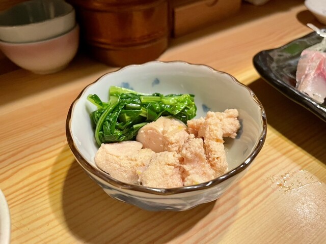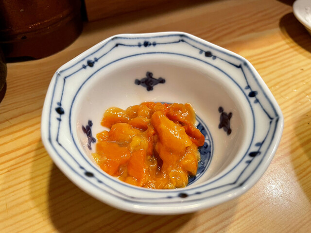 続く生ほたるいかも驚きの質。ほんとに生で浅く漬けてあるだけです。風味が強くって、これはいくらでも酒が飲めそうになりますわ。