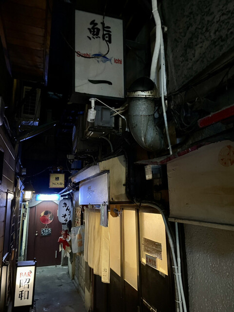 お隣の路地は戦後すぐな雰囲気ただようバールデー坂町やスナック顔なじみなどが軒を並べ、こちらの路地の入り口にはこれまたシブい雰囲気の中津川という寿司屋さんがある場所です。