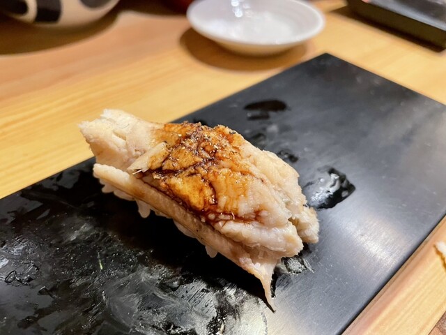続くあまーいケンサキイカに、プリッとした活けの食感が楽しい穴子焼き霜などどれも間違いないですね〜。
