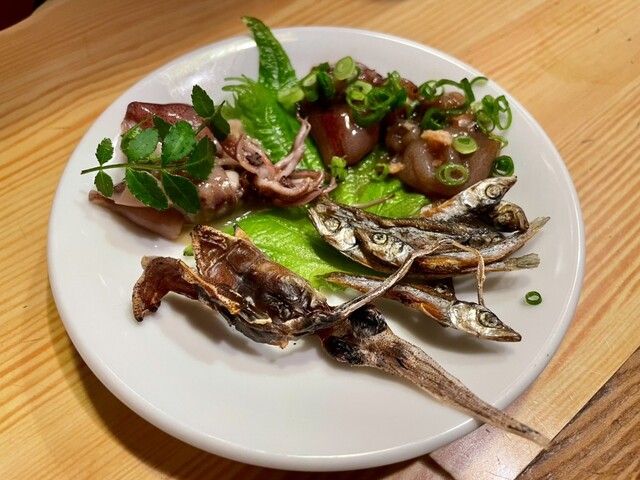 蛍烏賊盛り合わせ、新物めざし唐揚げ