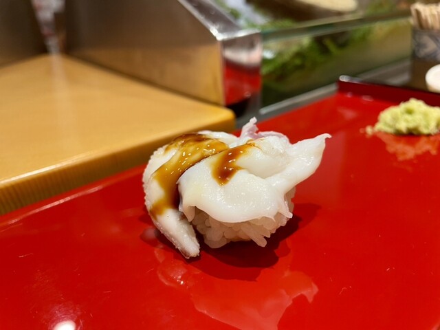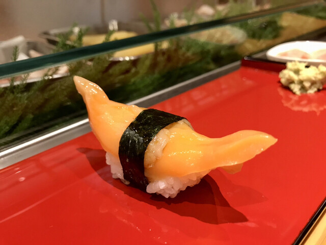 握りは控えめなシャリとインパクト大なネタ。