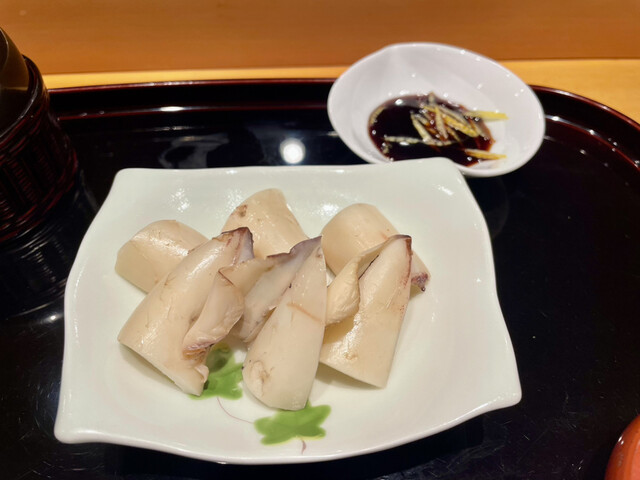 ヒモの部位ごとの食べ比べが楽しめる赤貝も最強だし、柚子&煮つめで楽しむ煮いかもたまらんところ。次のアテも決まった!