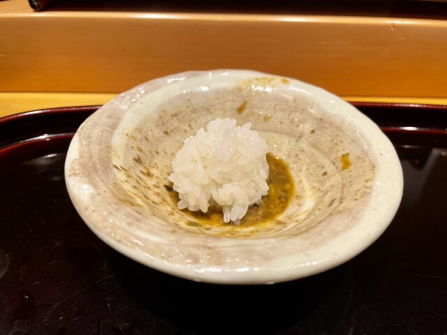 あわび肝醤油にシャリ投入〜