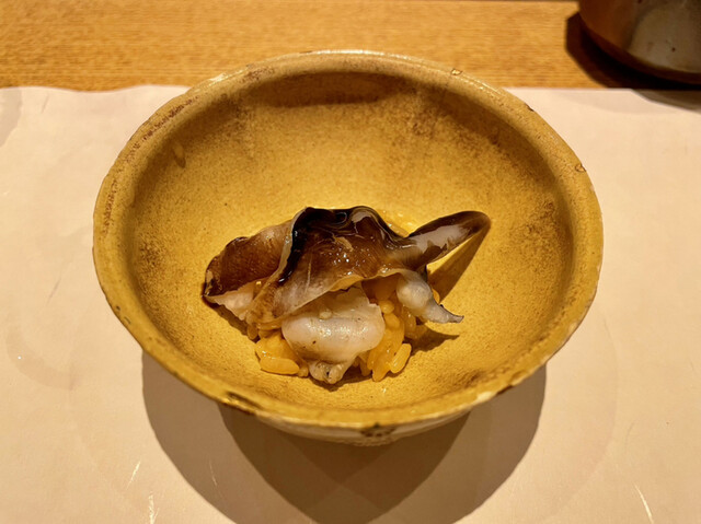 安定の明石の鯛、アマテガレイ、蛸のスペシャリテ。今回は白身が特に良かった。季節終わりな鮑は肝のリゾットと合わせて。酒が進みます。