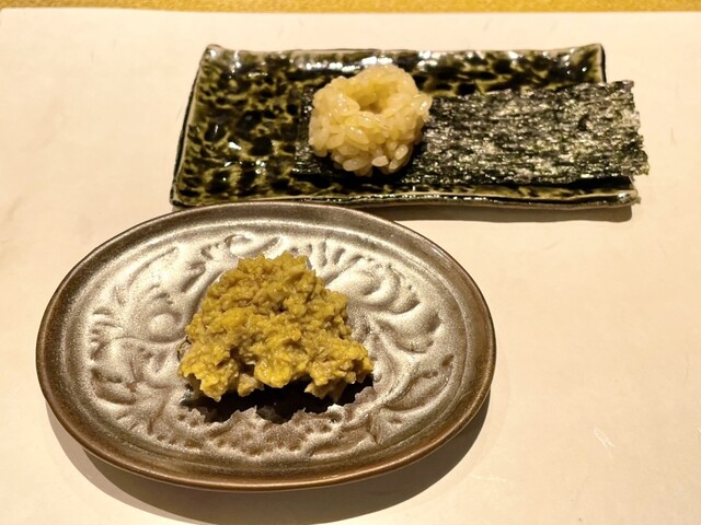 ・北海道 白子 蒸し寿司、静岡青海苔と