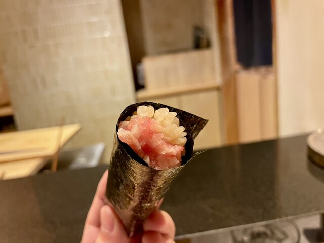 シャリは古古米を使い印象に残るタイプで、ほぐれ具合・固さが絶妙。明石、淡路島、鳴門など近海ネタはきずなさんらしいスペシャリテに、季節ものが加わり訪問するたびに感動が味わえます。そして、接客も何も文句なし。素晴らしい大阪の誇るお店だと思いますよ!