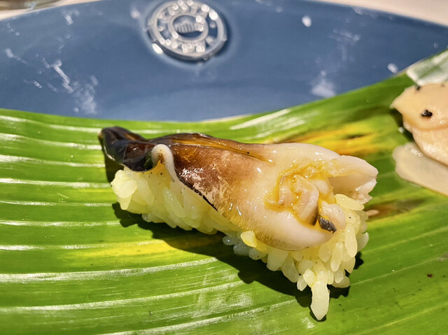 先付けのマテ貝のトーレンでちびちびやってたら、次はスパイス寿司。