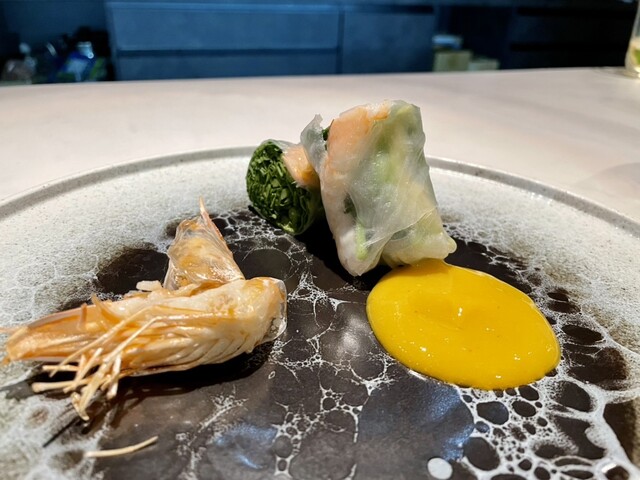 イタリアンの流れで、フレンチ・タイ・中華・スリランカなんて多国籍な料理にインドのエッセンスを加えたコース仕立て。この独創性がヤバいんよね!?でも、一番スゴいのは料理に向けた手間暇、こだわり。こんな料理を楽しめるお店はここしかないでしょう。と素直に思えるお店ですよ〜。