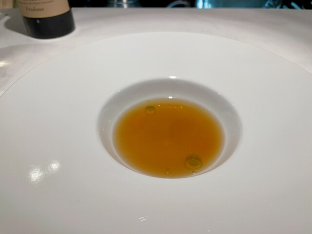 濃厚なバターのようなキャビアのコク、そこに合わさるエシャロットの食感と島らっきょのアチャールの香り。