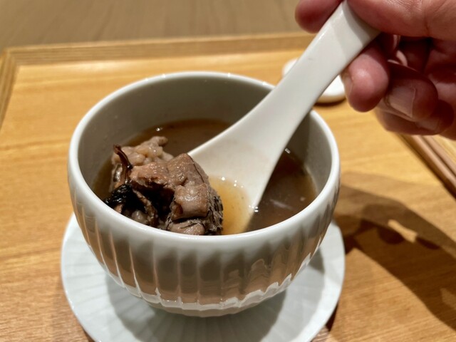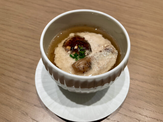 ④ スープ(季節のオススメスープ) 松茸、うずらと合鴨ミンチのすり流し