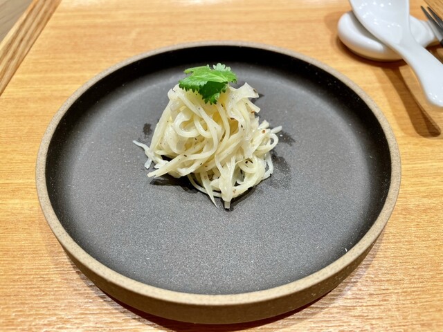 秋刀魚中国風コンフィと揚げワンタンの皮