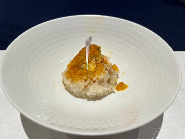 上海蟹出汁とサルボ貝、柿 プーパッポンカレー(サルカニ合戦)