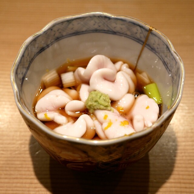 握りでは、柔らかくプリプリのしんいか、何とも言えない味わいの白甘鯛、噛めば噛む程に美味しさを感じる金目鯛等が特に印象に残りました。この金目鯛は、私的に今季一番美味しい金目鯛でした。