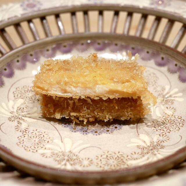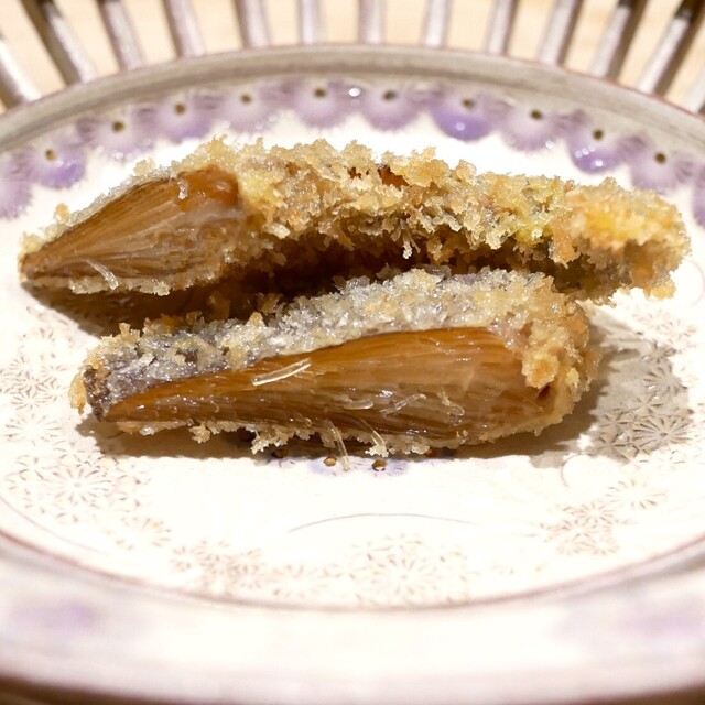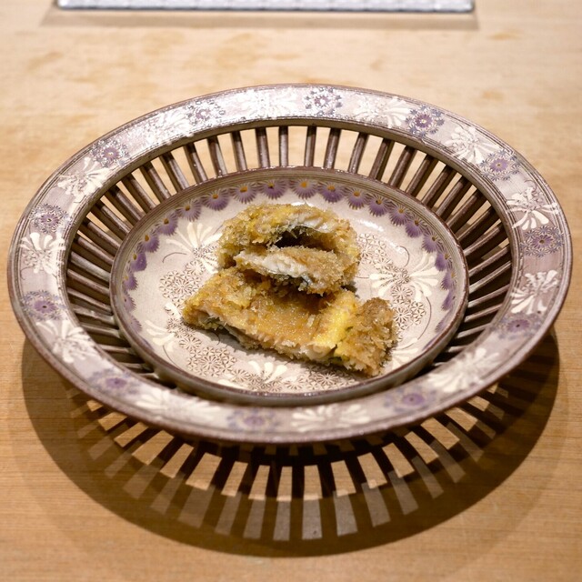 穴子出汁で煮た穴子をフライにしてます。ほんのりと甘みが感じられる上品な一品です