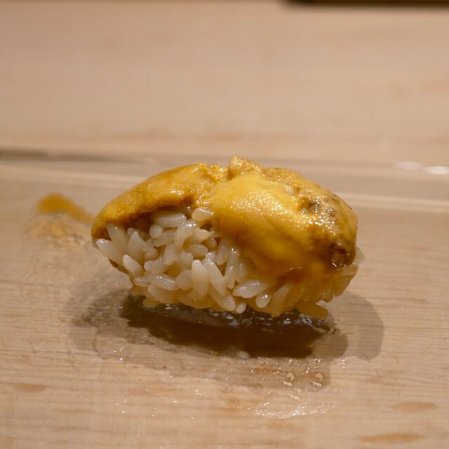『余市のバフンウニに青森のムラサキウニソース』ウニに出汁入りウニソースという発想が素晴らしい上に美味しいです