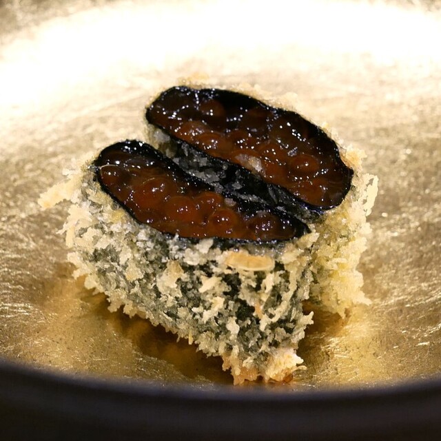 味噌が絡み合う蟹身は、蟹独特の甘さと風味が有り絶品です。増毛のボタン海老やあん肝フライは、火入れが秀逸でレア感が何とも言えない甘さや美味しさを醸し出してます。