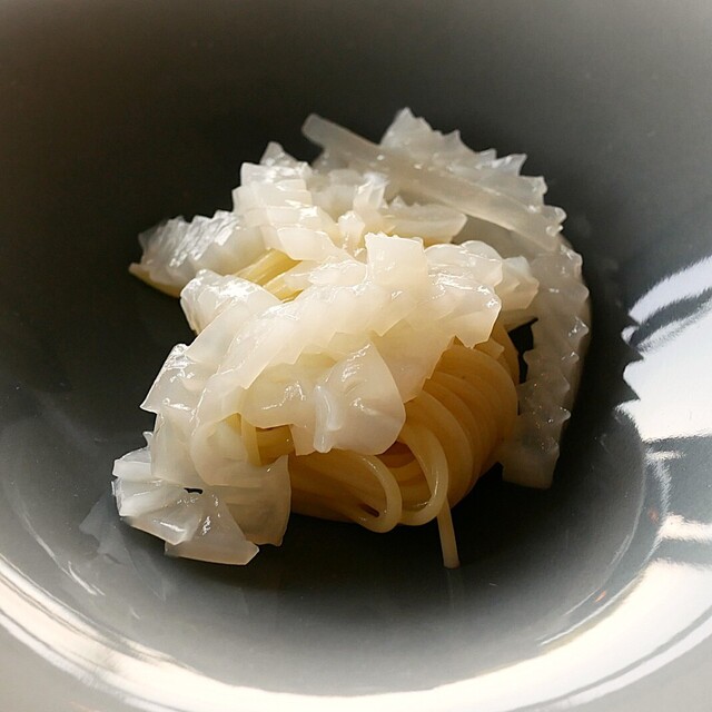 『長井 さかな人 長谷川さんより 神経〆 障泥烏賊 冷製フェデリーニ』