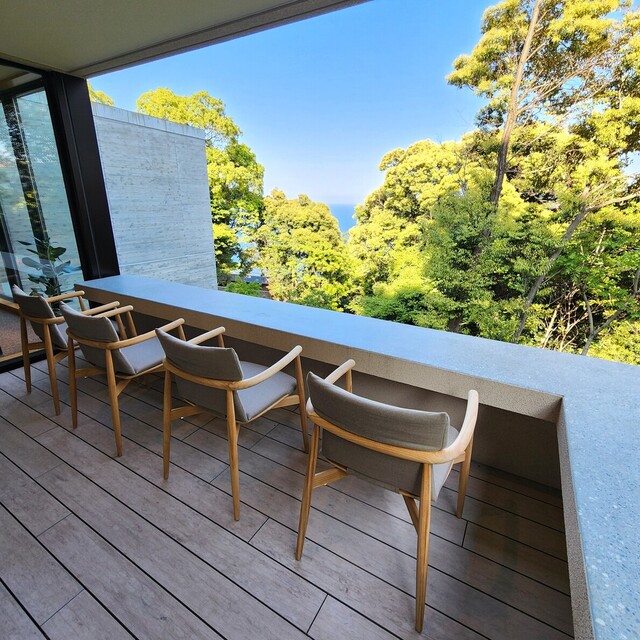 アクセスは、熱海市内の網代駅より車で7~8分程の所に有ります。『無為自然-ATAMI-』という新築のリゾートホテルの 1F です。ホテルは、何れも広々した造りで、部屋に天然温泉付きです。