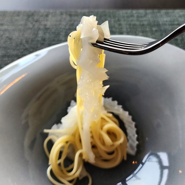 新鮮で、未だ透明感ある透き通ったアオリイカのフェデリーニは圧巻でした。イカ好きな自分には堪らない美味しさです。