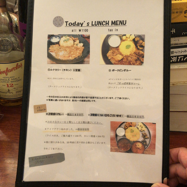 注文は定番チキンと限定の鰆のカレー2種盛りと自家製カシスジェラート。